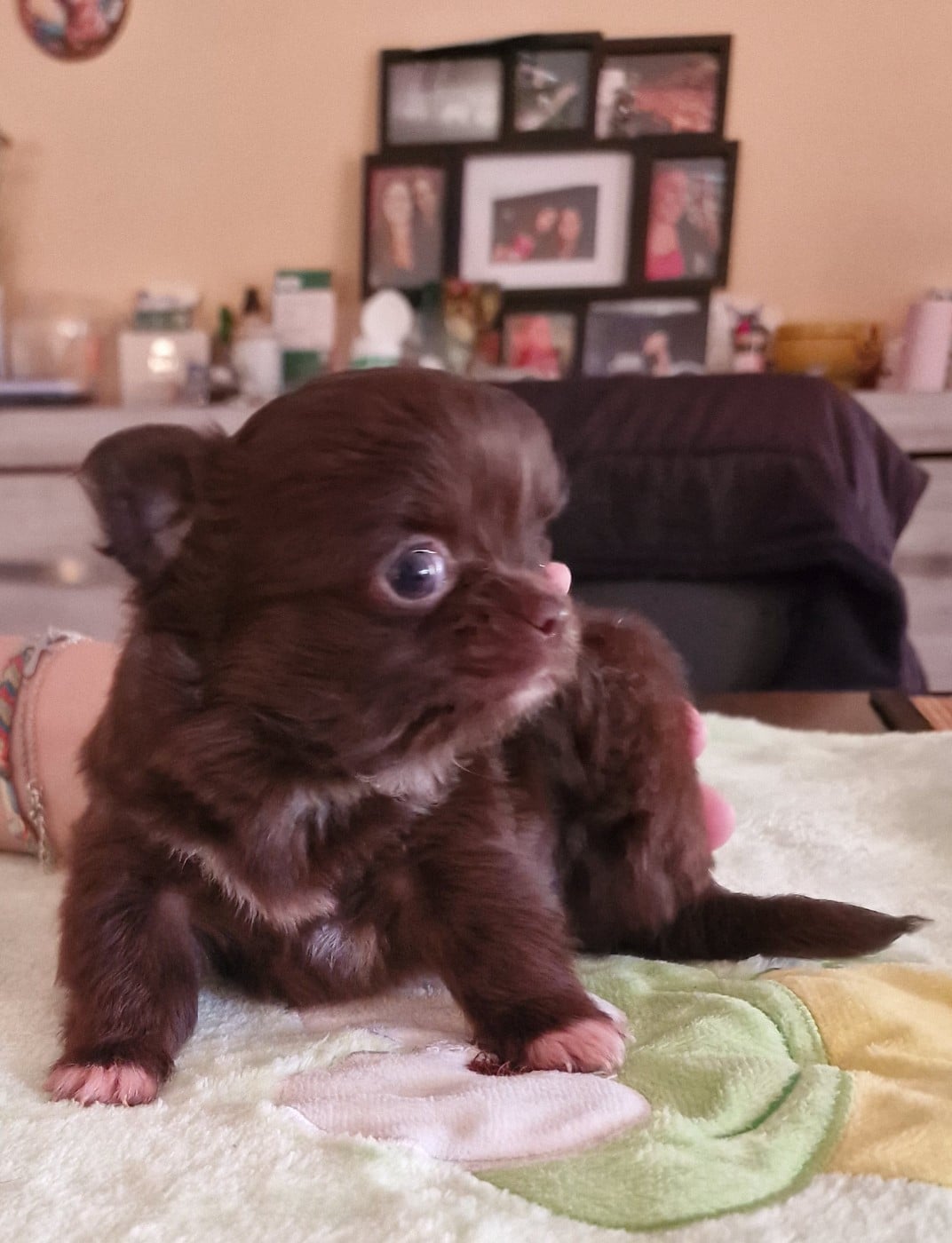 Petit mâle chocolat et blanc Pèse 342 gr Petit gabarit